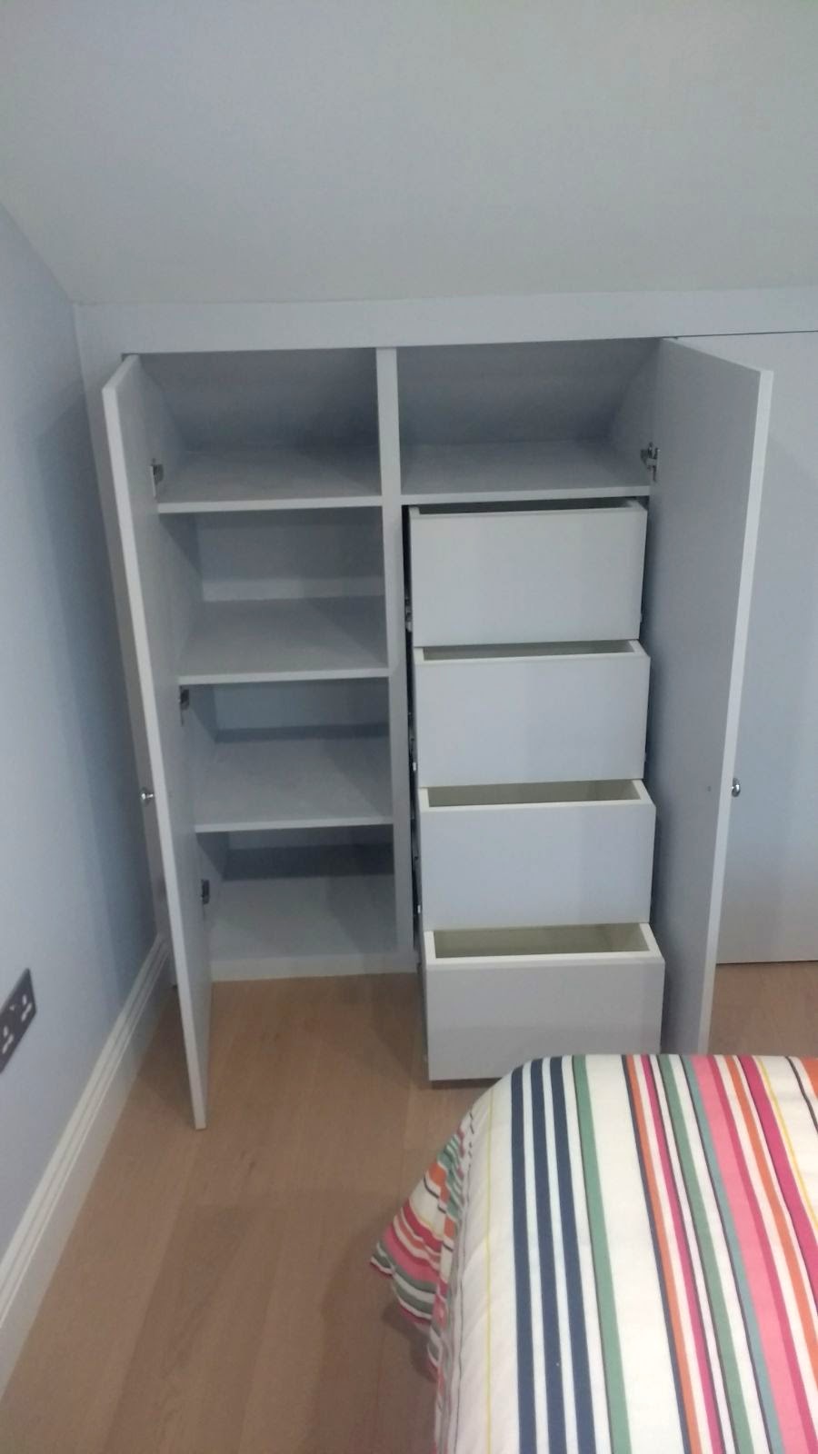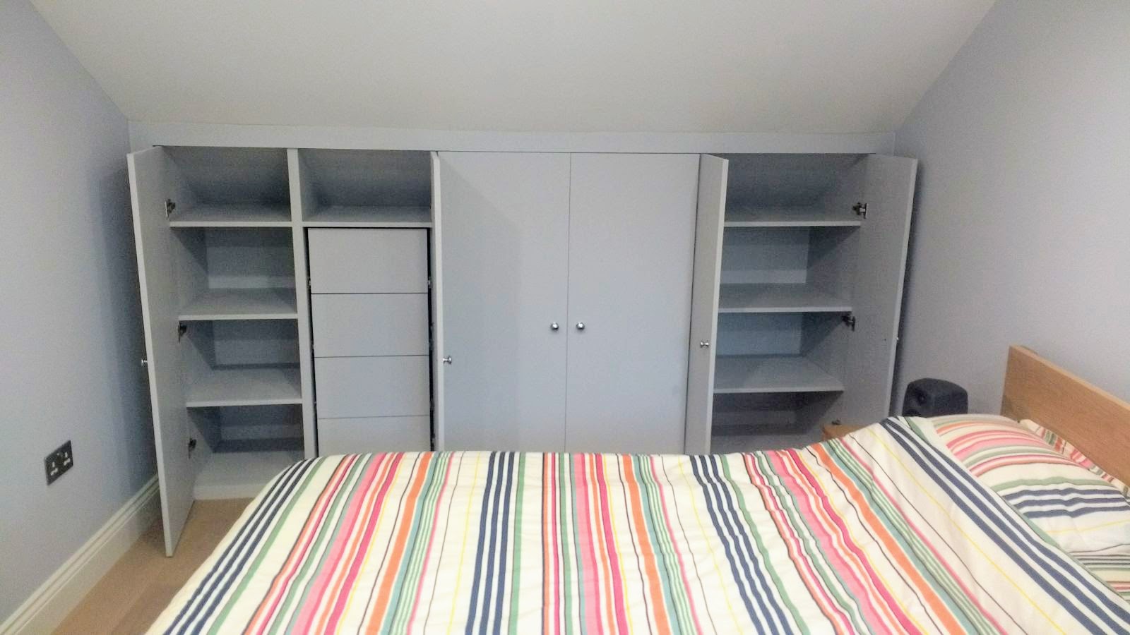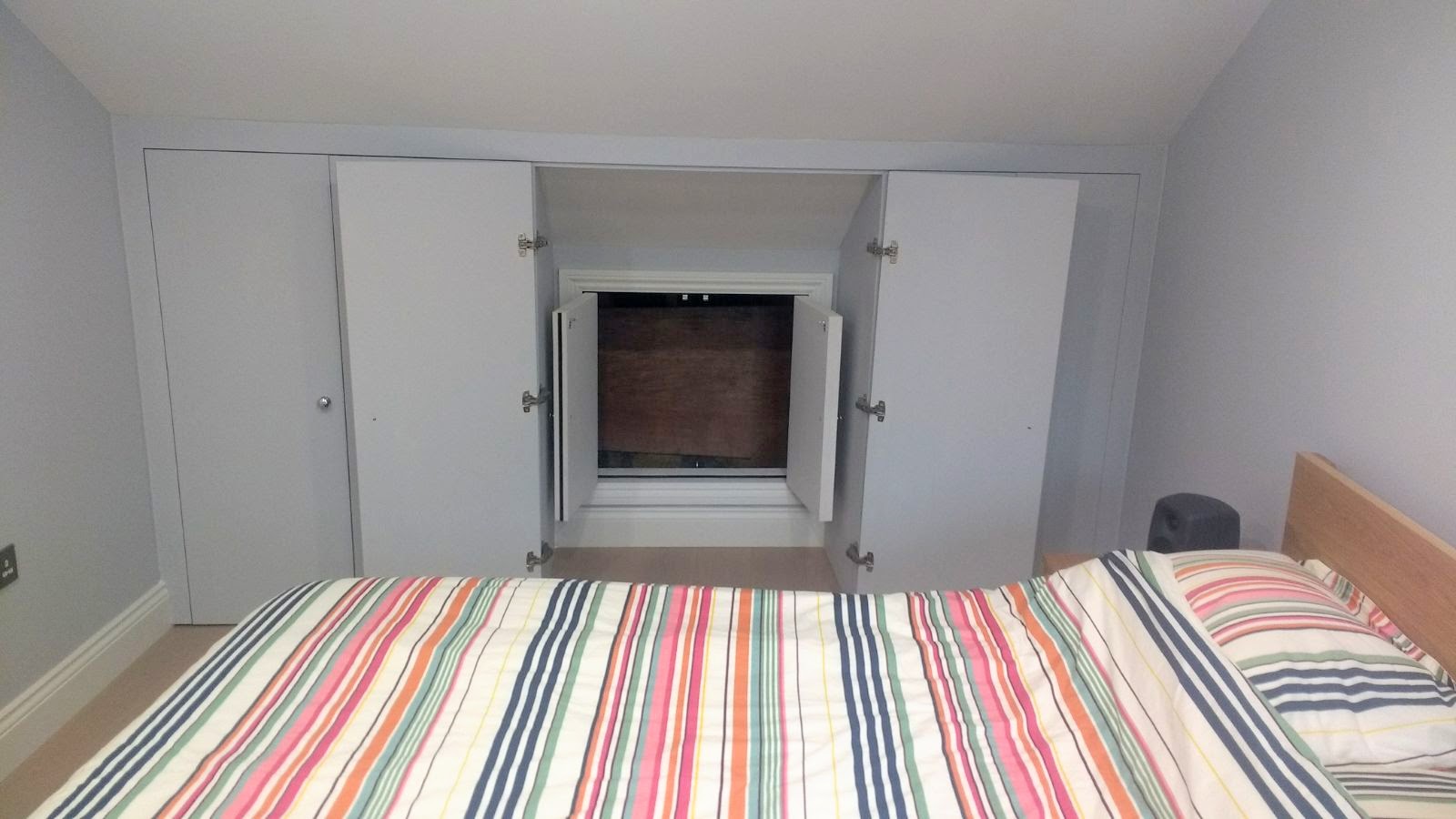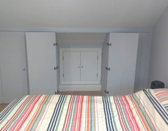 We recently completed these bespoke wardrobes/storage to new Loft Eaves. We also created additional storage behind using a second insulated door, through the centre wardrobe. Take a look below. #bespokestoragebrockley #lofteavesstoragesolutions